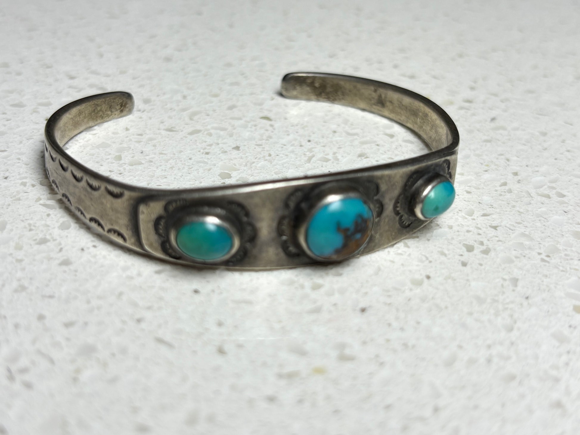 Vintage 1960s Bisbee Turquoise Navajo Sterling Silver Bracelet